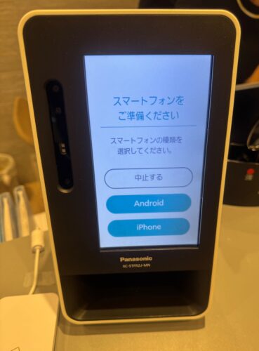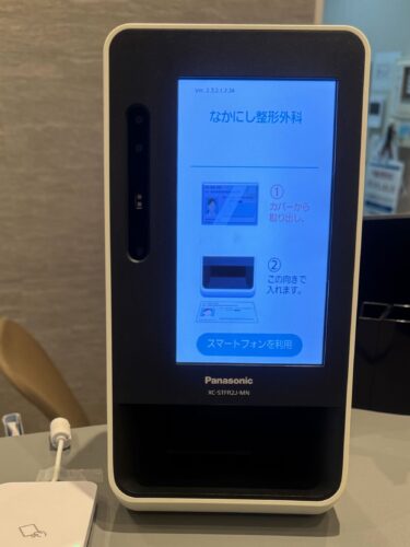 ③それぞれ画面に沿って操作していただき、白い機械の上にスマートフォンをかざすと受付完了になります。